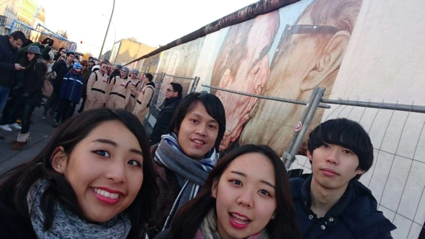 このSilvesterの時期にパーダーボルンから同じくドイツ語学科の友達が遊びにきて、イーストサイドギャラリーで有名な絵の前にて。