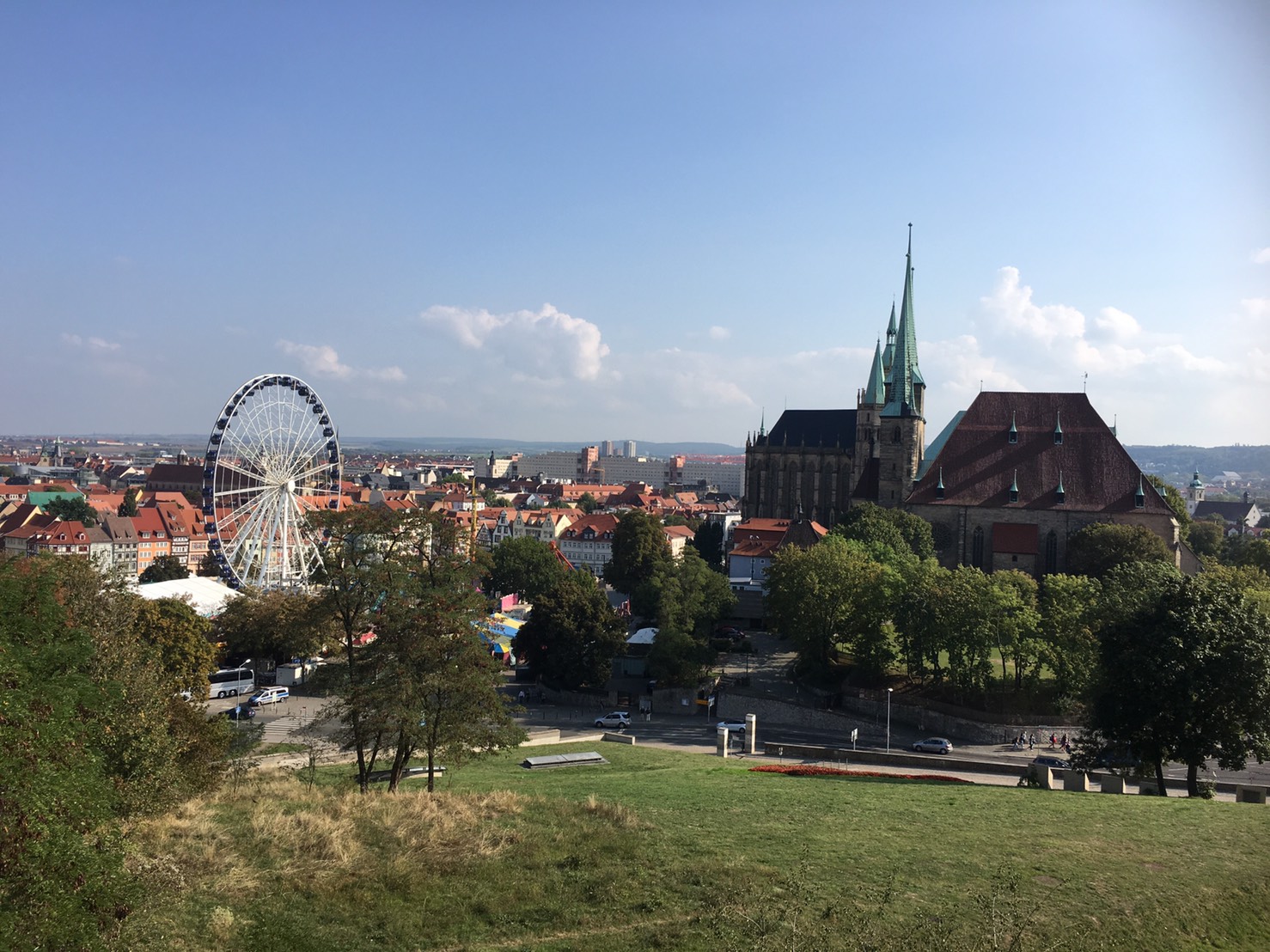 この町はデュッセルドルフやミュンヘンといった大都市と比べれば規模は小さいですが、 トラム(路面電車)でほぼ町中を行き来できますし、大学からほど遠くないところにメイン ストリートがあって、そこで生活に必要なものはなんでも揃えることが出来るので、とても 住みやすい街だと感じています。 また町の中心には「クレーマー橋」というそこそこ有名な名所があって、9月のまだ暑い時 期には川を見ながらアイスを食べたり、昼間からビール片手におしゃべりしたりしている 人がたくさんいて(‼)、東京にいたころよりもずっと、ゆったりと時間が流れているような 気がしています。 町のあちこちには、今も旧東ドイツ時代の名残をみつけることが出来ます。例えば信号機がアンぺルマンだったり、いかにも東ドイツらしいシンプルな作りの噴水や建物があったり などなど・・・・。すめばすむほど魅力が出てくるような、そんな街だと思います。 今回はそんな町での、私の体験を少しお話ししたいと思います。