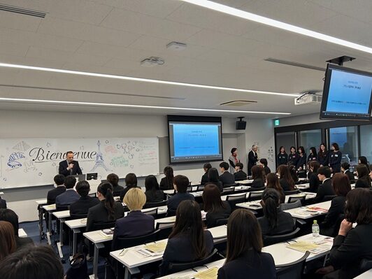 70名の新入生が学科集会に集まりました。