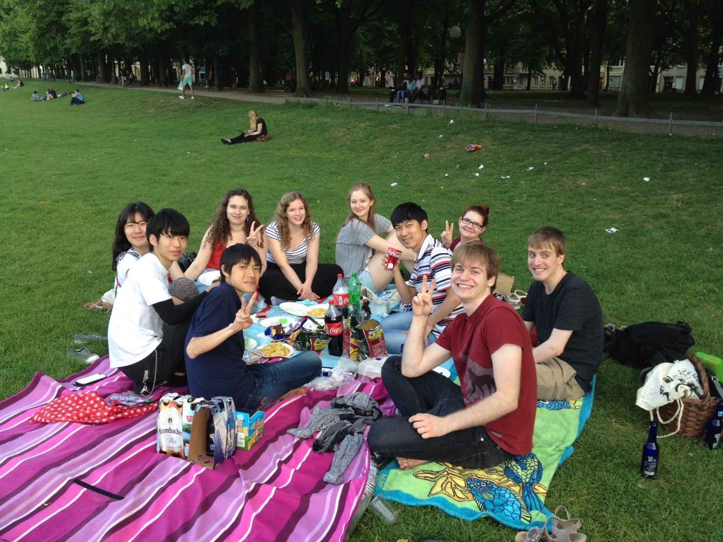 実際の留学生活は予想に反して、とても楽しいものでした。まず初めての一人暮らしは新鮮そのものでした。私は日本食がとにかく好きなので、どうやってドイツの食材を使って日本食が作れるかと常に試行錯誤しています。パスタの作り方すら分からなかった留学当初の状況から考えるとかなりの成長だと思います。そしてなにより同じ留学生の台湾人や韓国人やアメリカ人とお互い拙いドイツ語でコミュニケーションをとったり、ドイツ人の友達とタンデムをしたり一緒に遊びに行ったりするのが私にとってとても良い時間になっています。他のアジアの留学生との交流の中で私は他の近くの国の事を全然知らないのだと気づかされ、また同時に彼らの話を通してとても興味を持つようになりました。時間があるうちに友達になった留学生を訪ねて旅行をしたいと思っています。また色々なところで私を楽しませてくれたドイツ人の友達2人が秋から日本に留学するという事で今度は自分が日本の色々な良いところを紹介できたらと思っています。話のテーマを生活に戻します。今ドイツの気候は暖かくカラッとしていてハワイみたいです。ボン大学の前にはホフガーテンという大きな芝生の広場があるので学校終わりなどによくそこで、円になってゲームをしたり、サッカーやバレーボールをしたりしています。逆に冬は辛かったと半期前から留学していた人達はいつも言っています。
