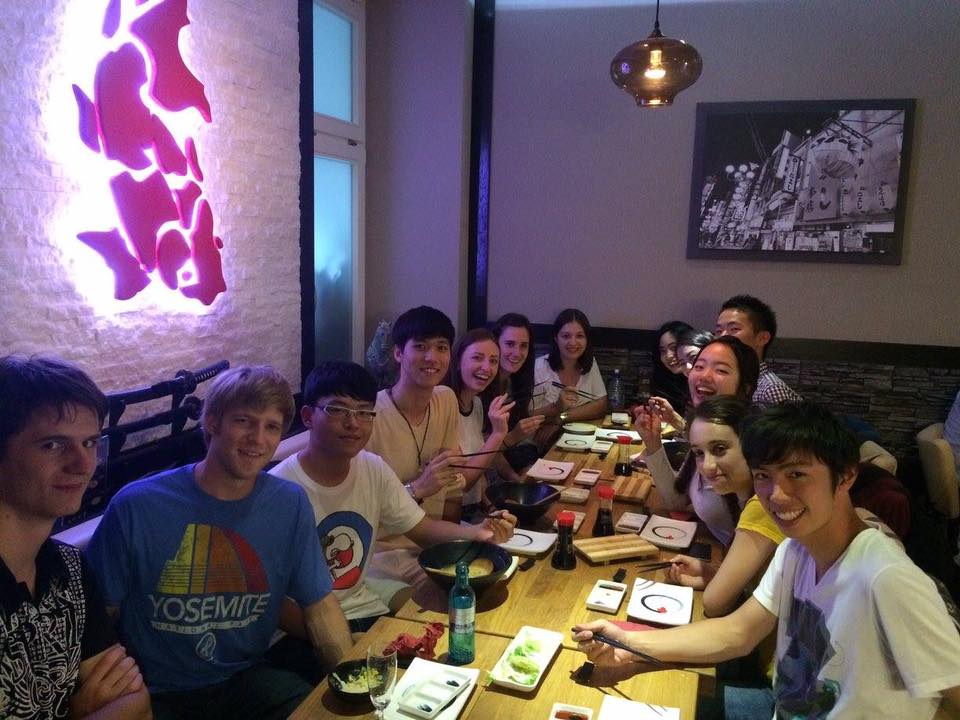 次に自分の経験から述べてみたいと思います。留学して最初のころ、ドイツ語を向上させるためにタンデムパートナーを探していました。なかなか見つけることの出来なかった僕は、日本学科主催のスタムティッシュ(2~3か月に一回くらいの頻度)が待ち切れず、手っ取り早く見つけるために日本学科1セメスターの授業に乗り込みました。その時は全くアポも取っていない状態で教授に衝動的にお願いしに行ったため、上手くいくかは非常に不安でしたが、外国語教育に興味があるという建前で授業に参加することが出来ました。そして最終的に5人のタンデムパートナーと知り合うことが出来ました。