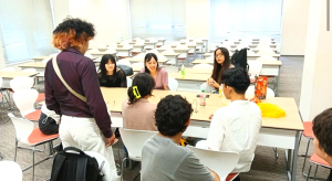 お昼休みはみんなでお弁当を持参しておしゃべりを楽しみました。7人ほどのグループに分かれて、みんな積極的に自己紹介や学科の話をして楽しんでいる様子でした😊